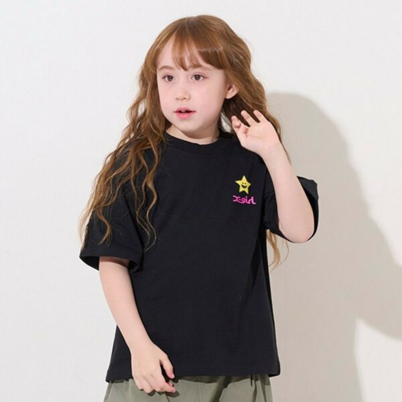 [エックスガールステージズ] ハートロゴバックプリント半袖Tシャツ クロ(80)