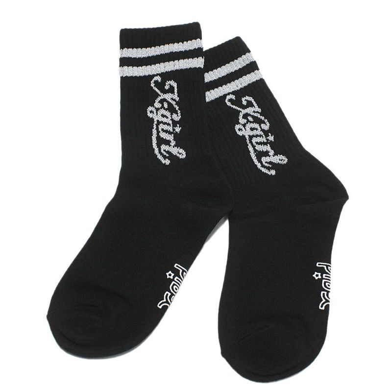 “エックスガールステージズ”のラメラインロゴリブクルーソックス