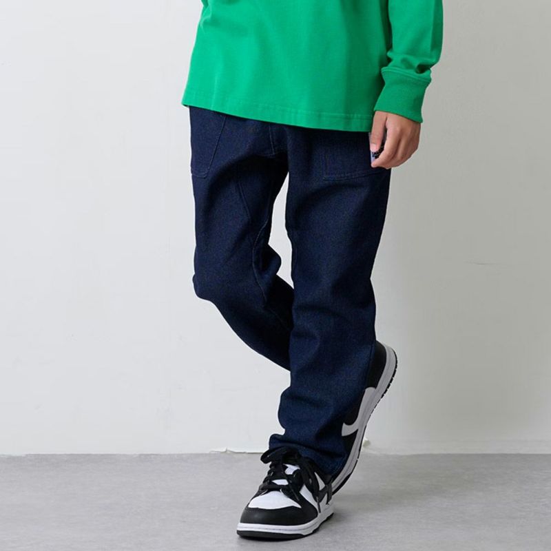 [エクストララージキッズ] バックロゴカットデニムテーパードパンツ ブルー(51)