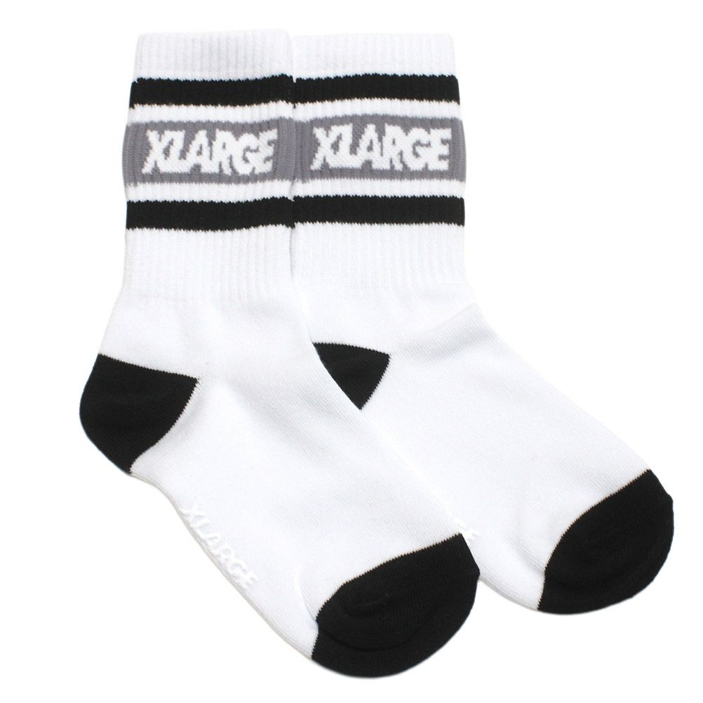 [エクストララージキッズ] ロゴラインクルーソックス シロ(01)