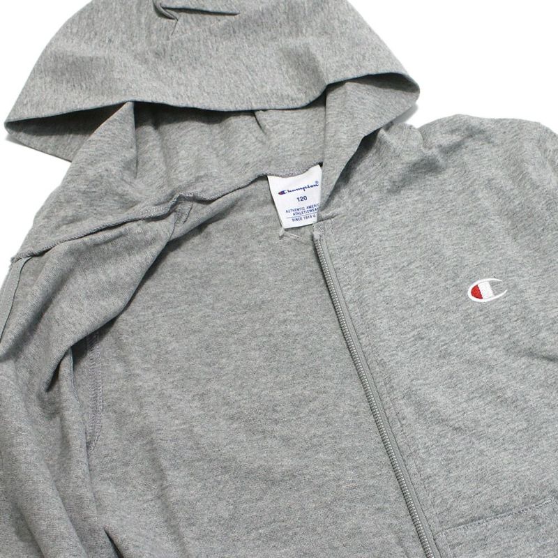 [チャンピオン キッズ] ジップフードシャツ オックスフォードグレー(070)