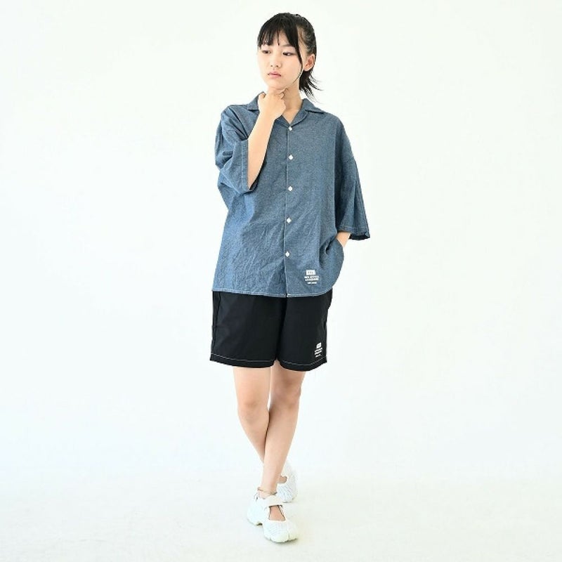 ・ダンガリー素材を使用した開襟シャツ