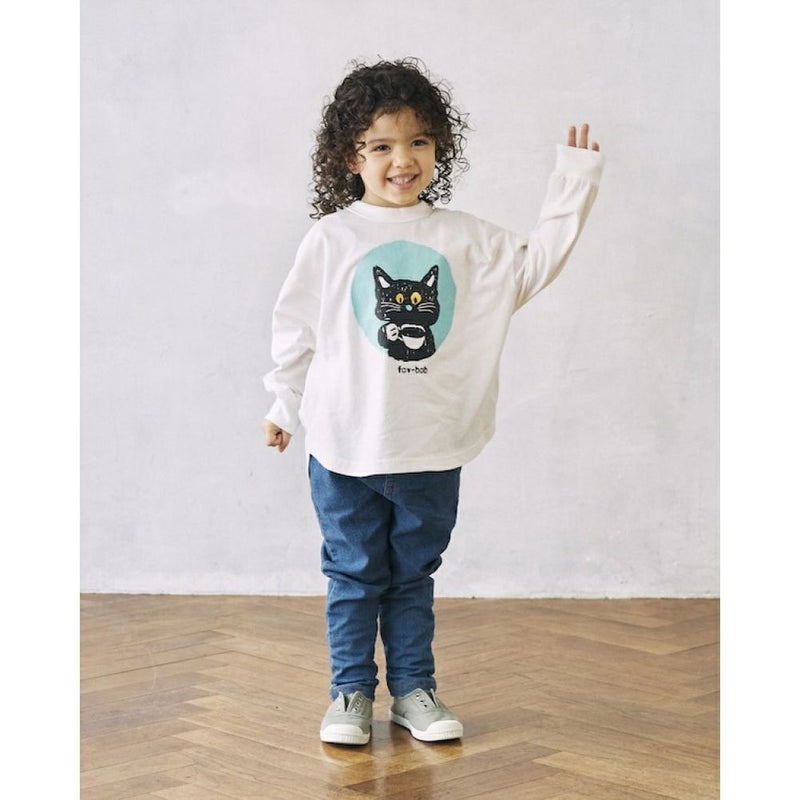 ・絵本から飛び出したような黒猫プリント