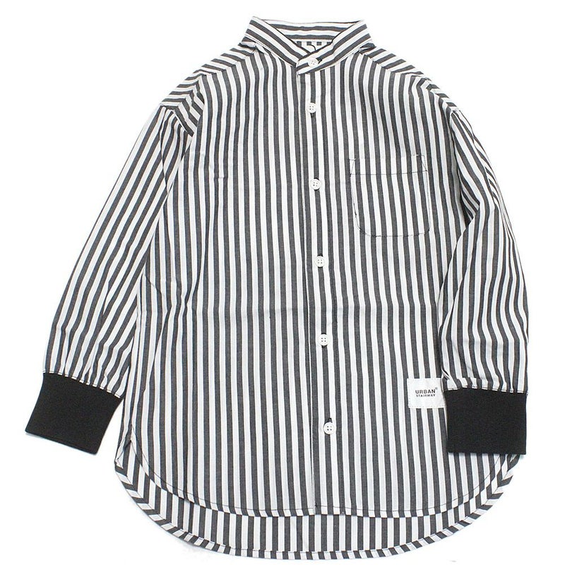 [ジェネレーター] バンドカラーL/Sシャツ ストライプブラック(SK)