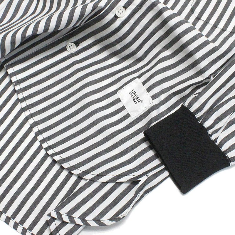 5. [ジェネレーター] バンドカラーL/Sシャツ ストライプブラック(SK)