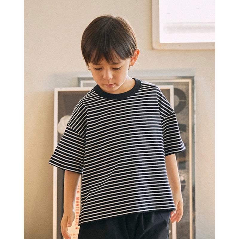 ・伸縮性のある先染めボーダー天竺を採用