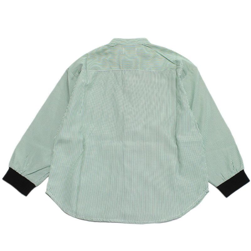 ・ストライプ地が爽やかなバンドカラーシャツ