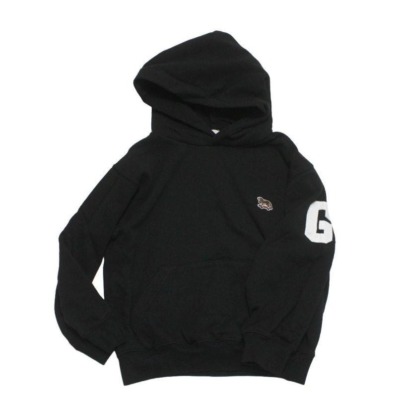 ・バックにはロゴプリント、左袖にはGのアップリケをプラス