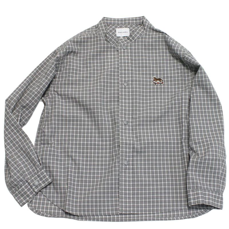 [グルーヴィーカラーズ] ミニチェック BUDDY バンドカラー シャツ 3GRグレー