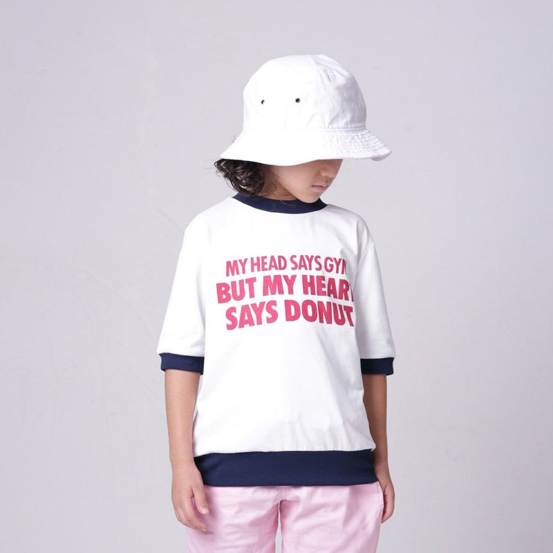 ・太めなリブ幅とフロントのロゴメッセージがクールな半袖T