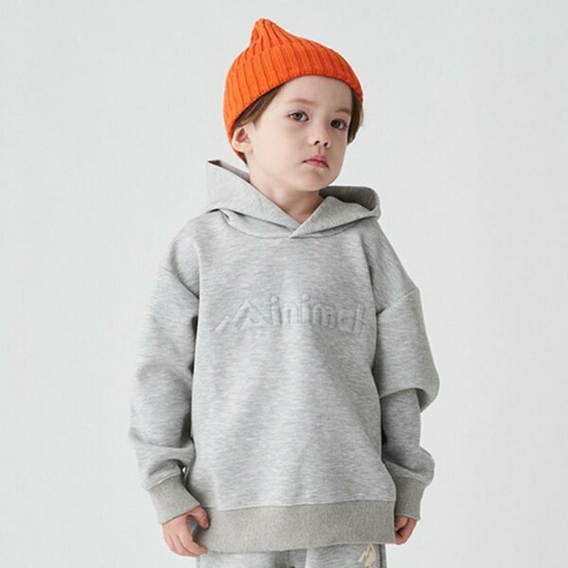 ・エンボス加工のロゴがポイントのプルパーカー