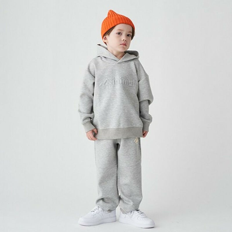 4. [ミニマル] ダンボール長袖プルパーカ エンボスロゴ グレー(82)