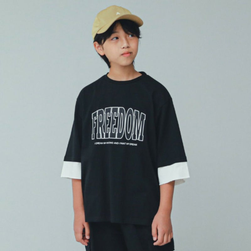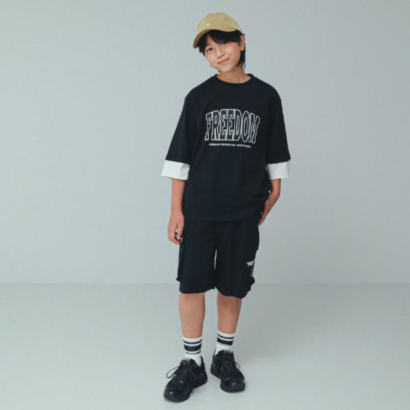 ・レイヤード風デザインの6分袖T