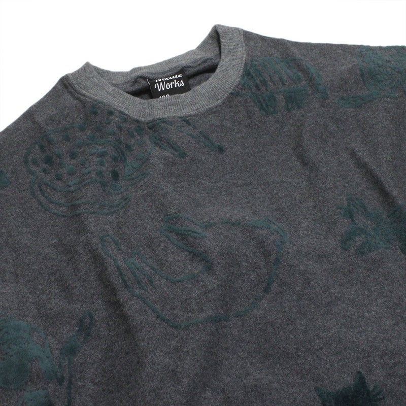 [ニードルワークス] CATフロッキージャガード天竺BIGベスト チャコール