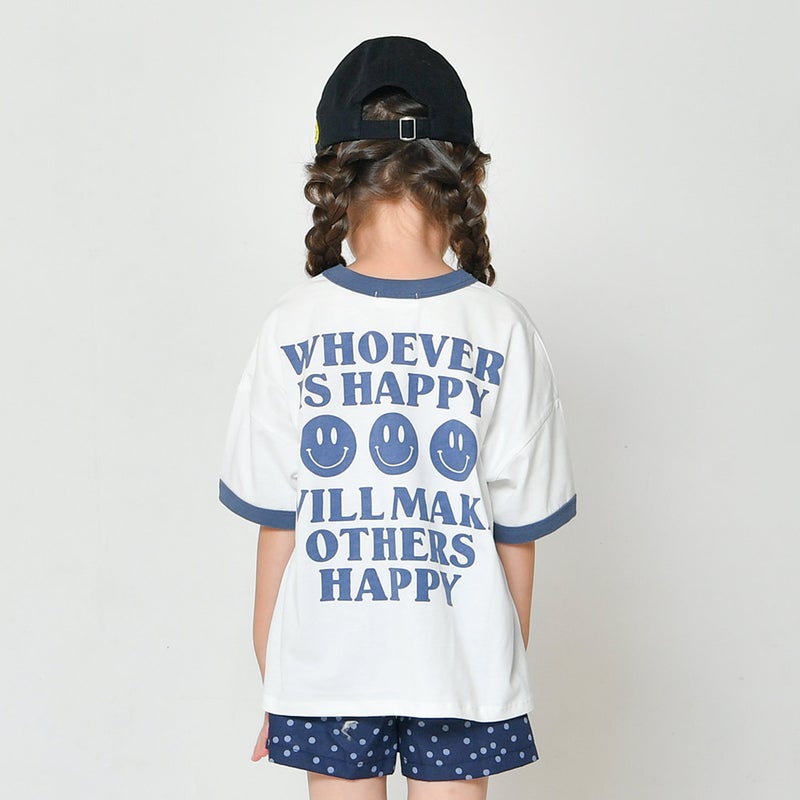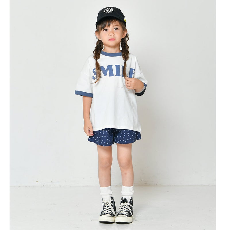 ・目を惹くロゴ&スマイルモチーフがポイントのTシャツ