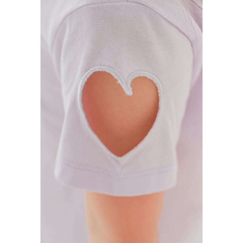 ・袖にハートのカットを施した抜け感のあるTシャツ
