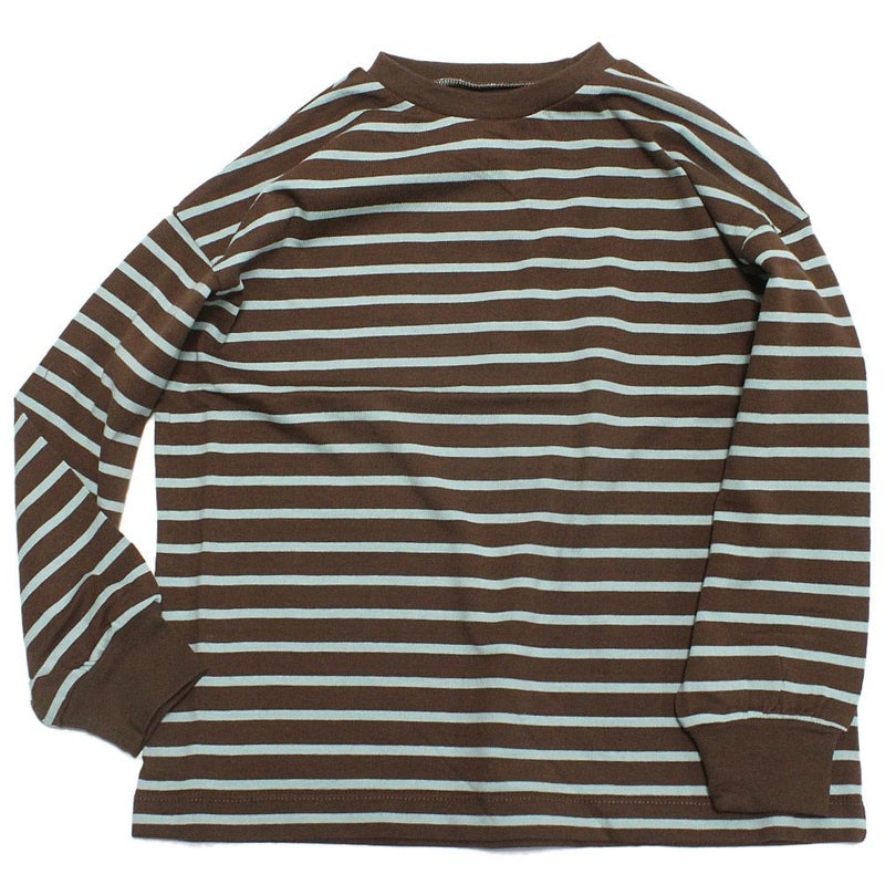 [オーシャン&グラウンド] ボーダーソデリブTシャツ ブラウン(BR)