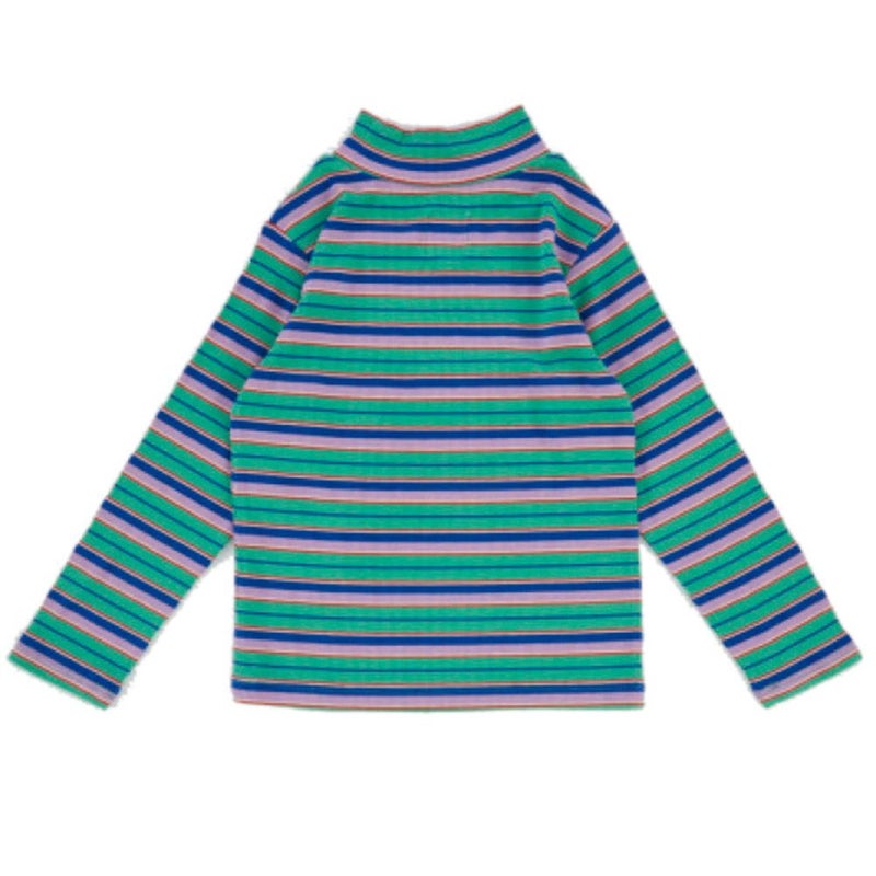 [オーシャン&グラウンド] タートルネックボーダーリブTシャツ グリーン(GR)