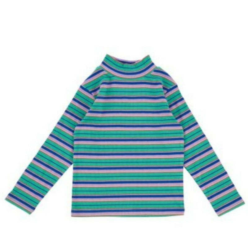 [オーシャン&グラウンド] タートルネックボーダーリブTシャツ グリーン(GR)
