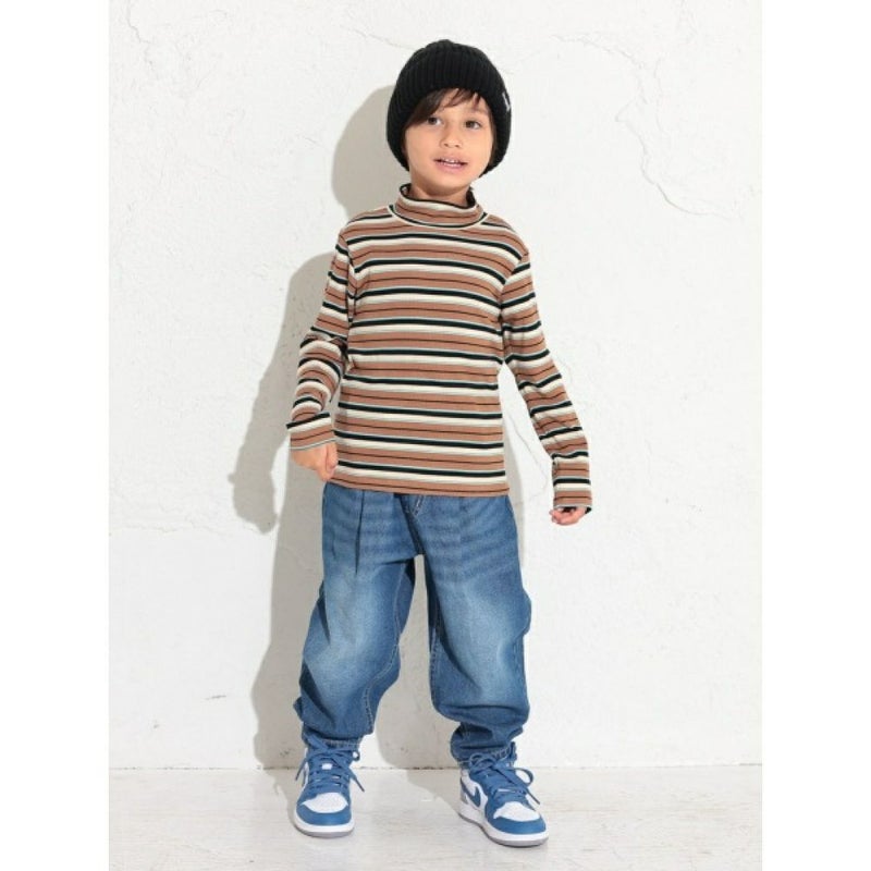 ・ボーダータートルネックTシャツ