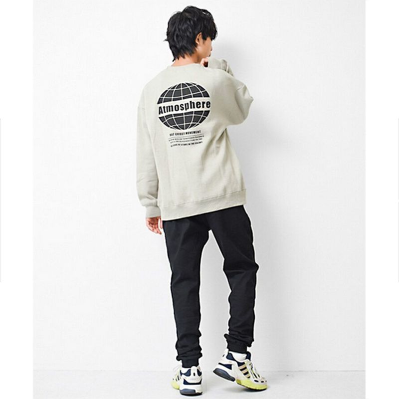 [ラットエフェクト] 裏起毛アースロゴバックプリントトレーナー グレイッシュベージュ