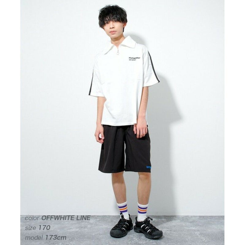 [ラットエフェクト] ハーフジップTシャツ オフホワイトライン