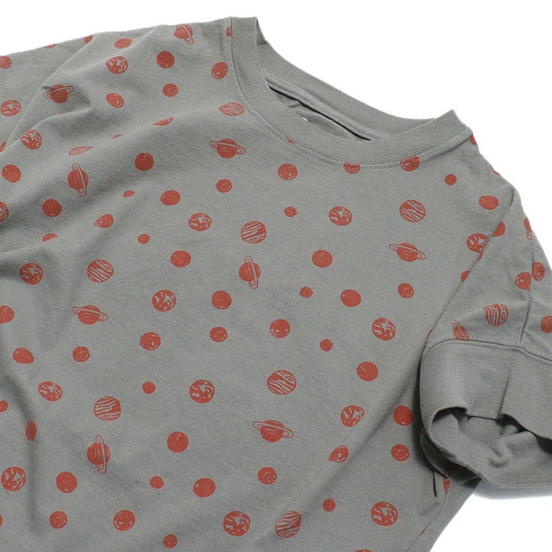 ・地球や土星をプリントしたドット柄のTシャツ