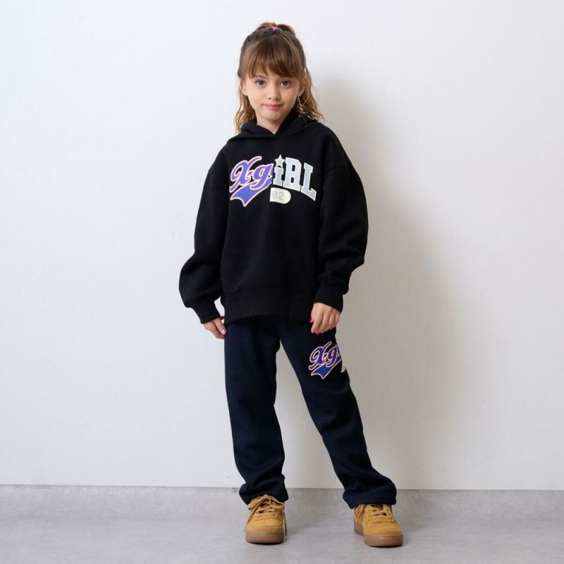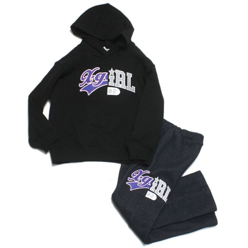 “エックスガールステージズ”の裏起毛ロゴパーカー&カットデニムパンツセット