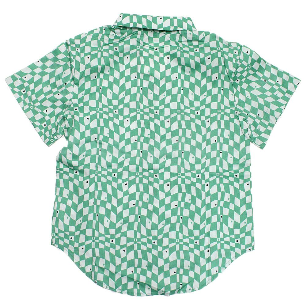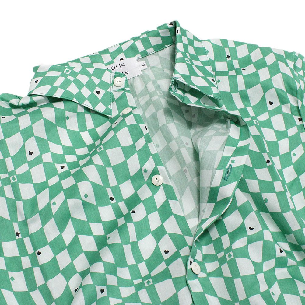 [フォークメイド] satin playing cardシャツ ペパーミント×グリーン