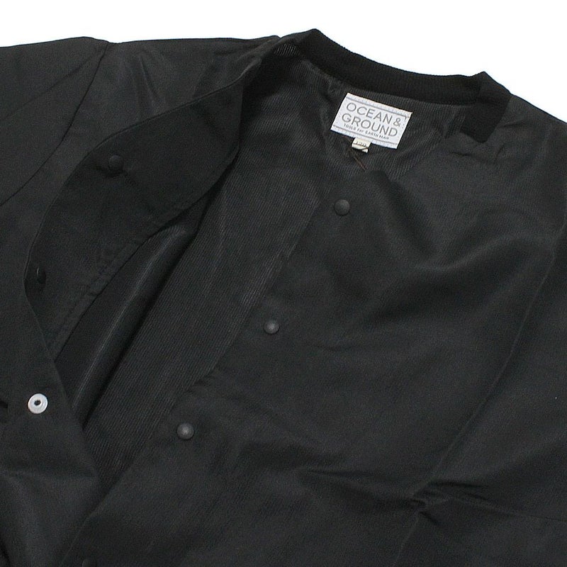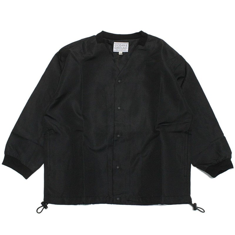 [オーシャン&グラウンド] ノーカラースナップカーディガン ブラック(BK)