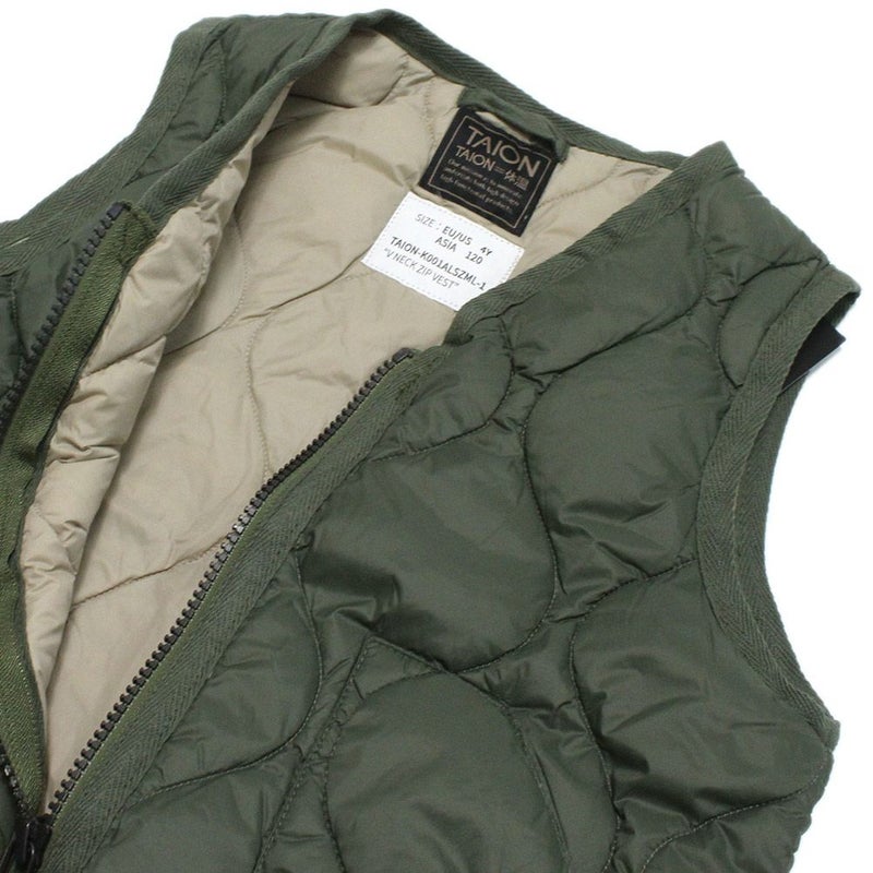 [タイオン] ミリタリー Vネックボタン インナーダウンベスト ソフトシェル オリーブ(OLV)