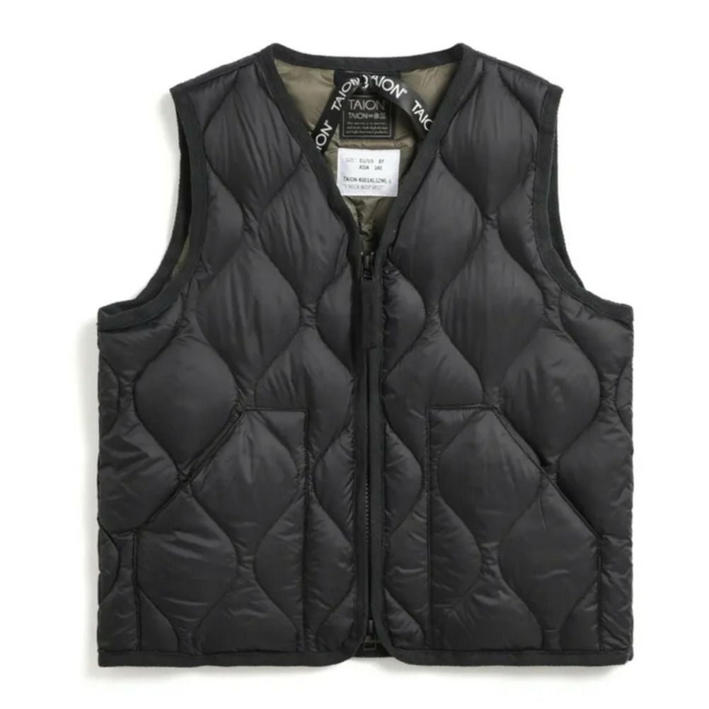 [タイオン] ミリタリー Vネックボタン インナーダウンベスト ソフトシェル ブラック(BLK)