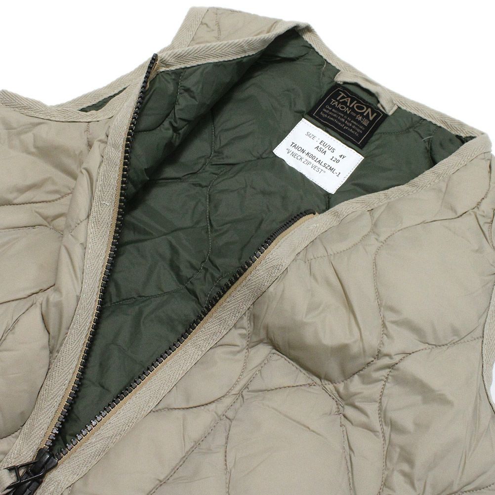 [タイオン] ミリタリー Vネックボタン インナーダウンベスト ソフトシェル グレーベージュ(GBG)