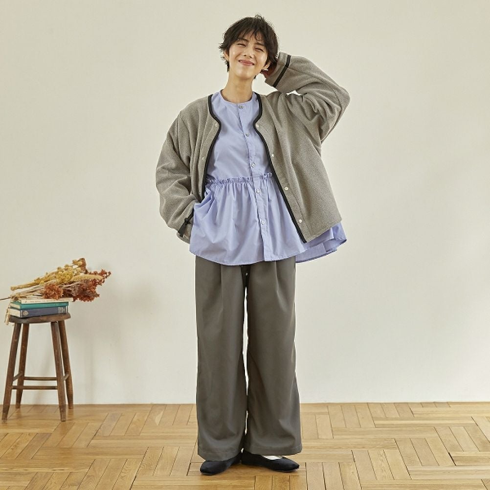 [アンディニー] フリースリボンカーディガン 杢グレー(TG)