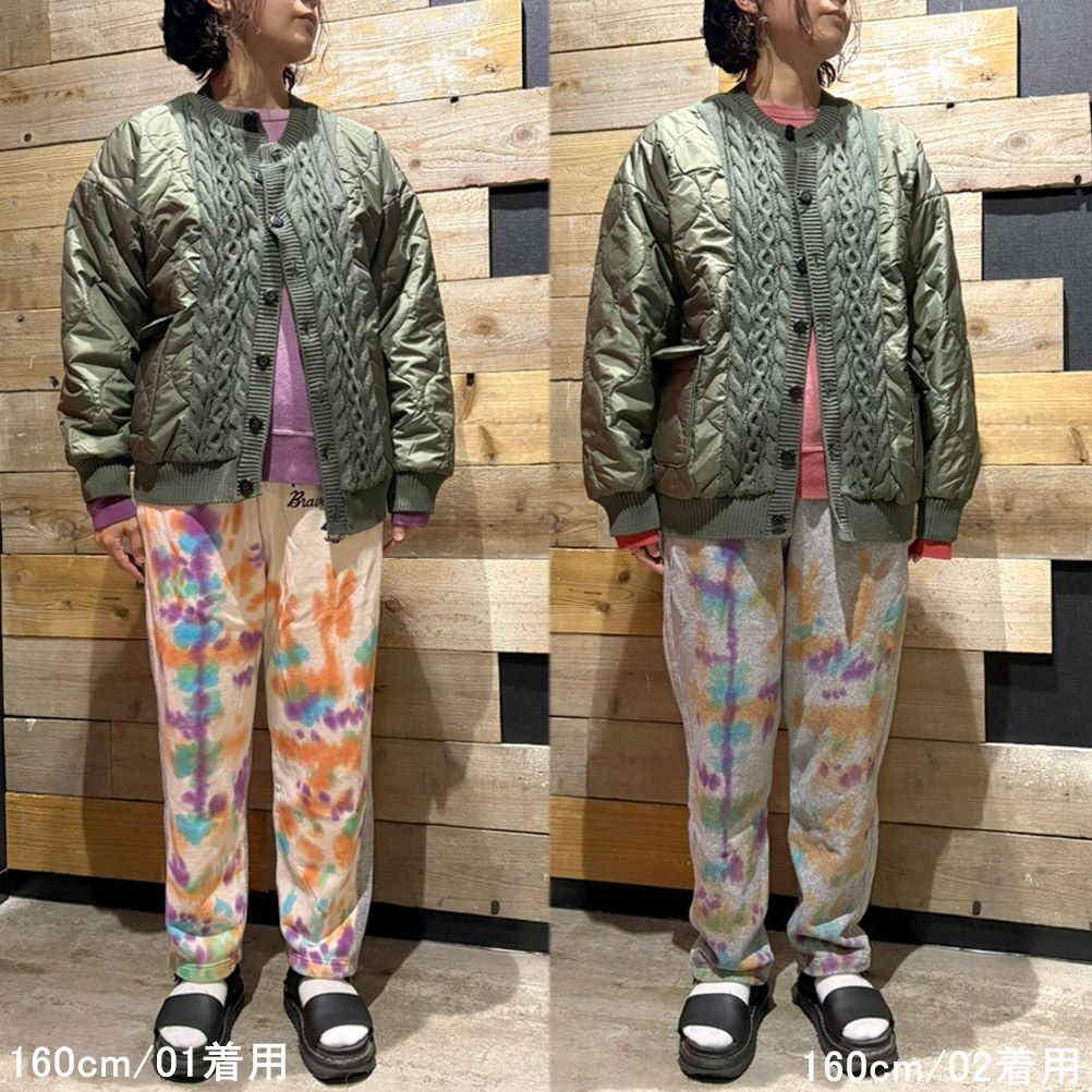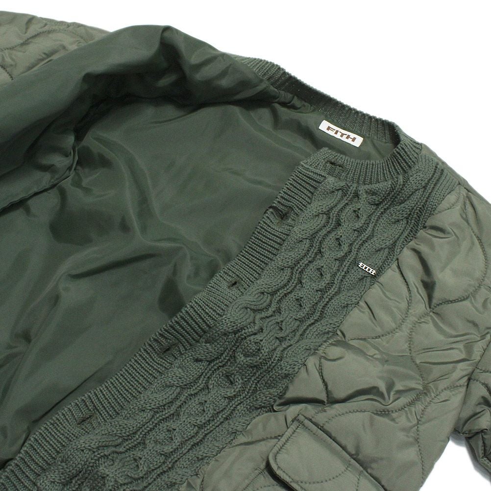 [フィス] ニット×キルティングブルゾン 8GNグリーン