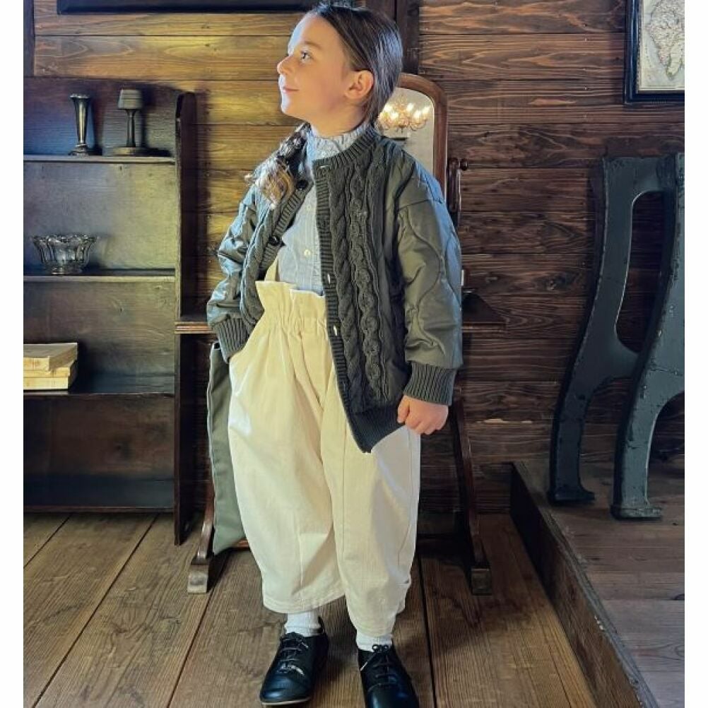 [ピードットプルミエ] ほわほわ中綿のスタンドカラーパファージャケット カーキ(KK)