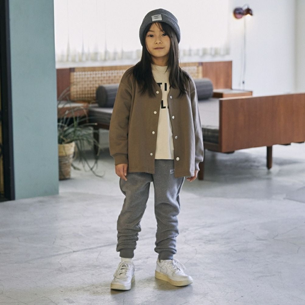 [エクストララージキッズ] ビッグロゴダンボールニットジップジャケット TOP・グレー(85)