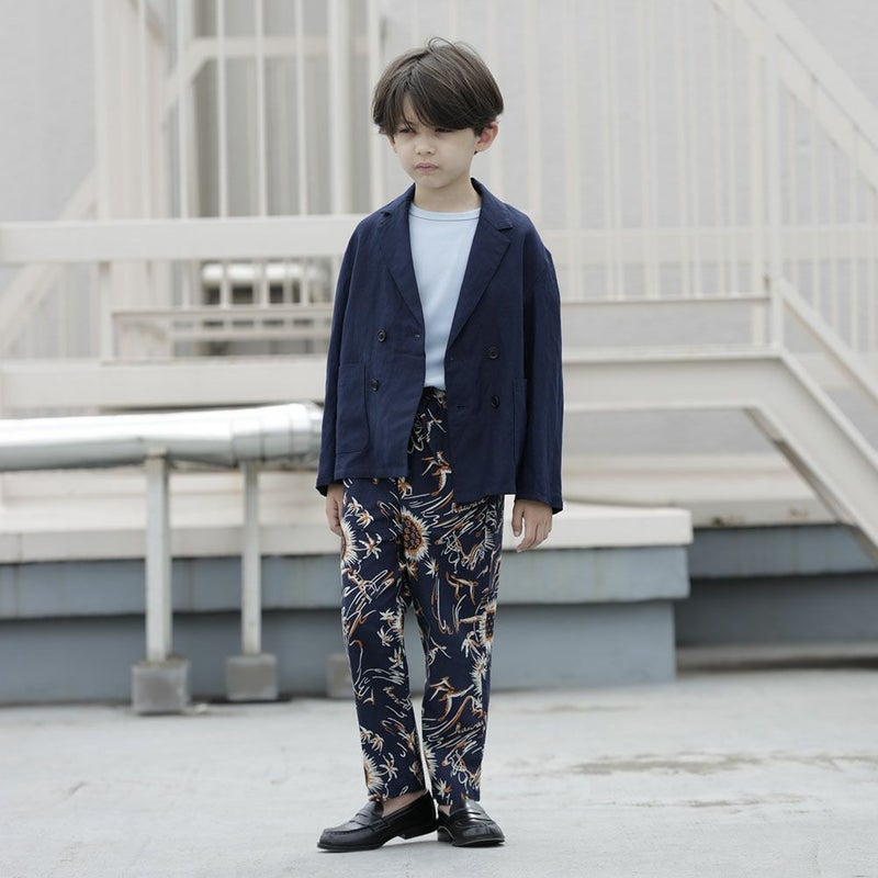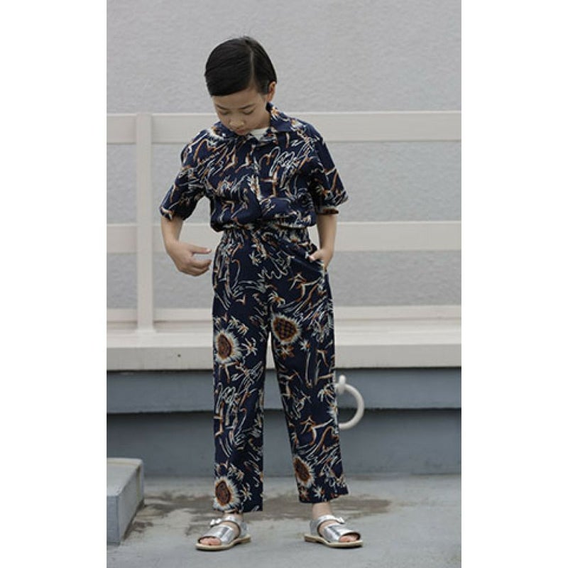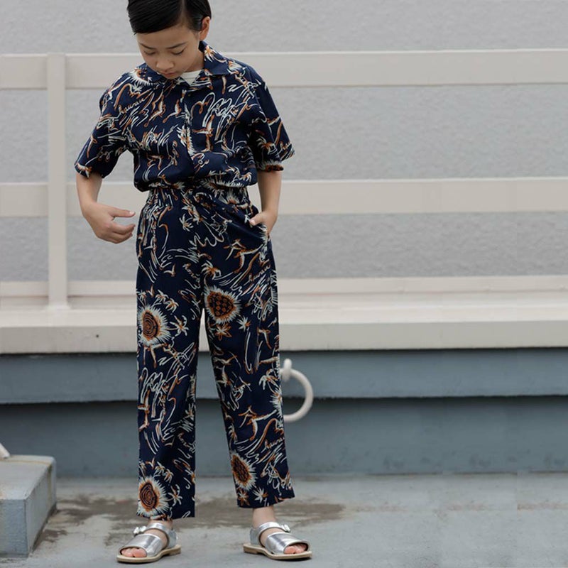 ・手書きモチーフの植物を全面にプリントしたロングパンツ