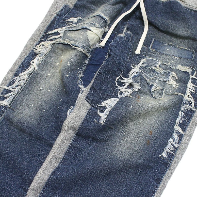 ・ダメージ加工が効いたヴィンテージ風のデニムで切り替えたデザイン