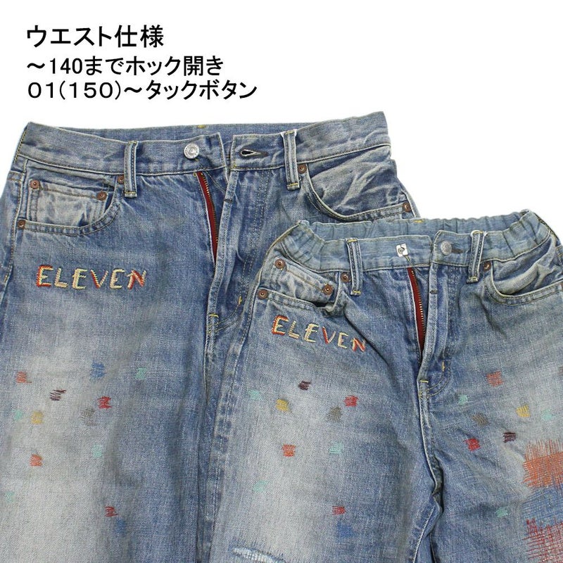 ・カラフルなリメイク風の刺繍が個性的なデニム