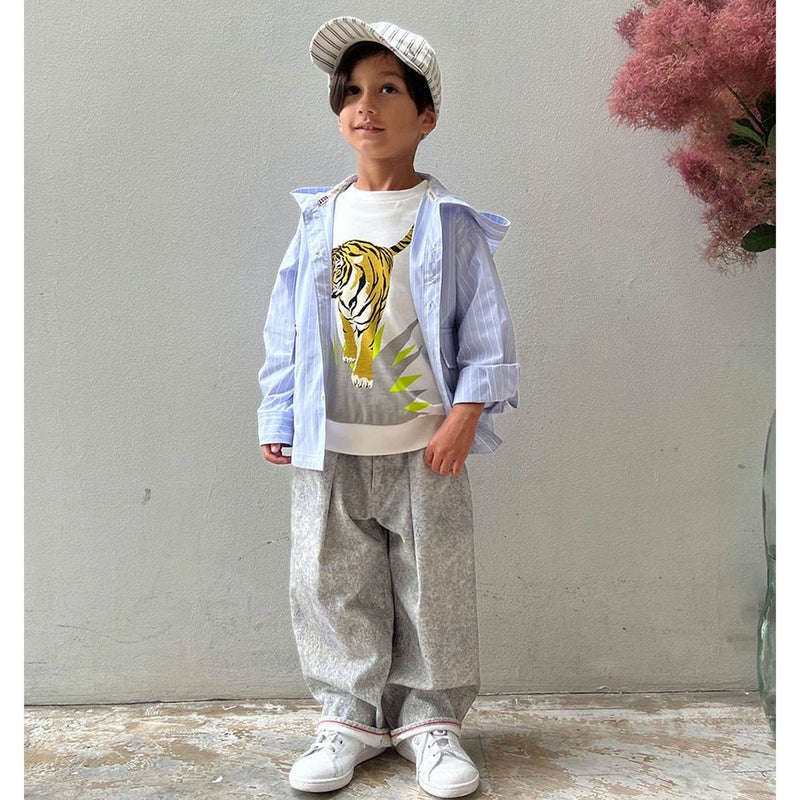 ・デニム調のワイドパンツ