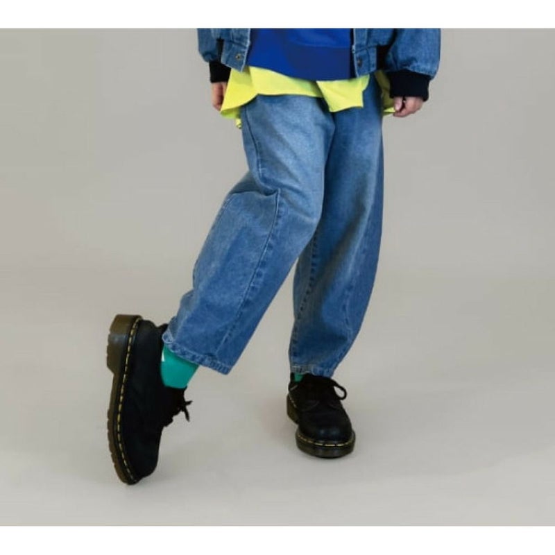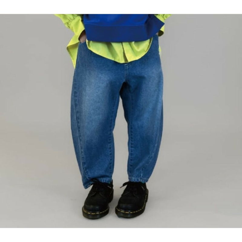 ・脇に切替を入れた丸みのあるバレルレッグパンツ