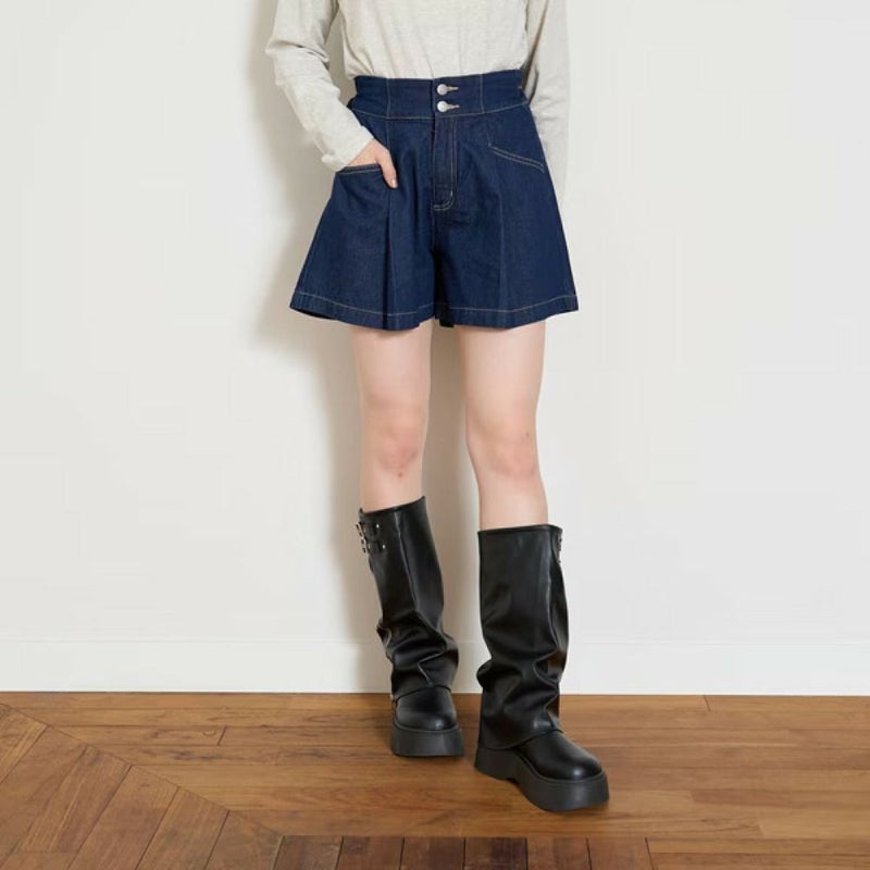 “ラブトキシック”の美脚見えタックフレアデニムキュロット