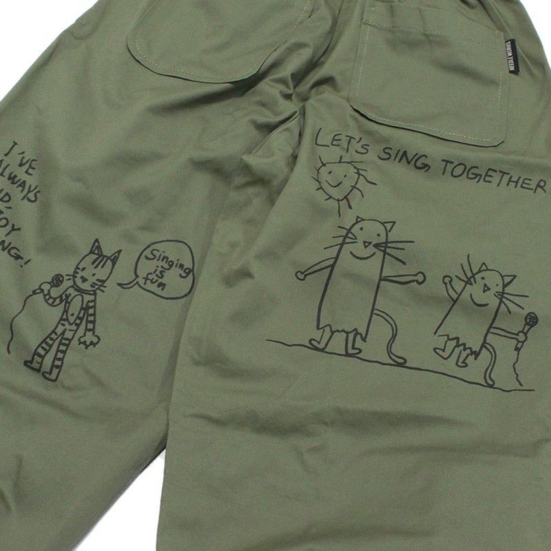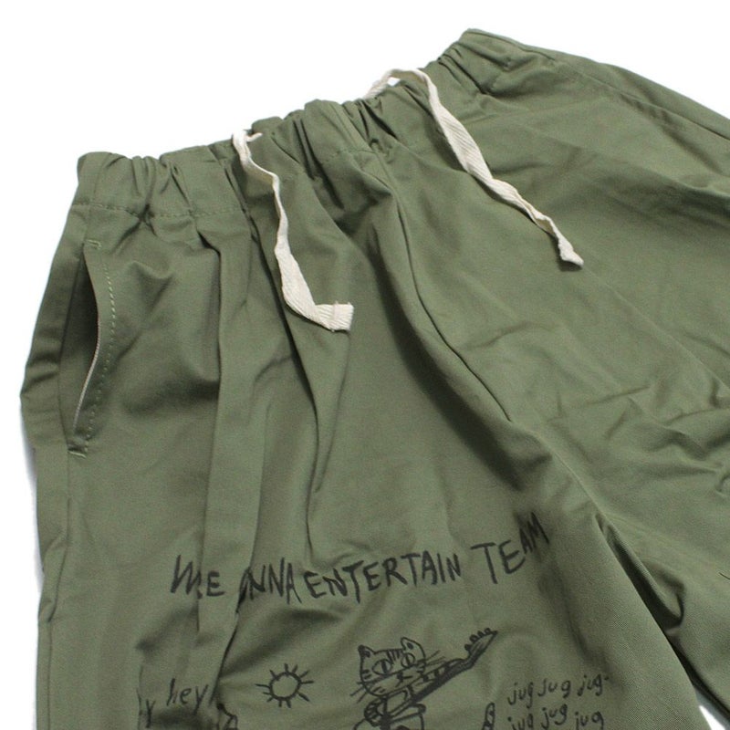 [ニードルワークス] ギャバ落書きコクーンパンツ カーキ