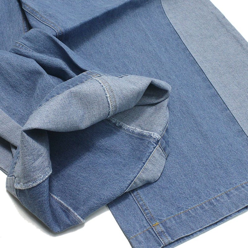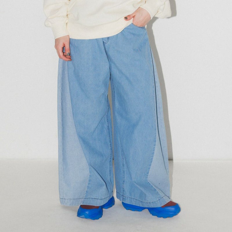 ・脇の切り替えが特徴的なデニムパンツ