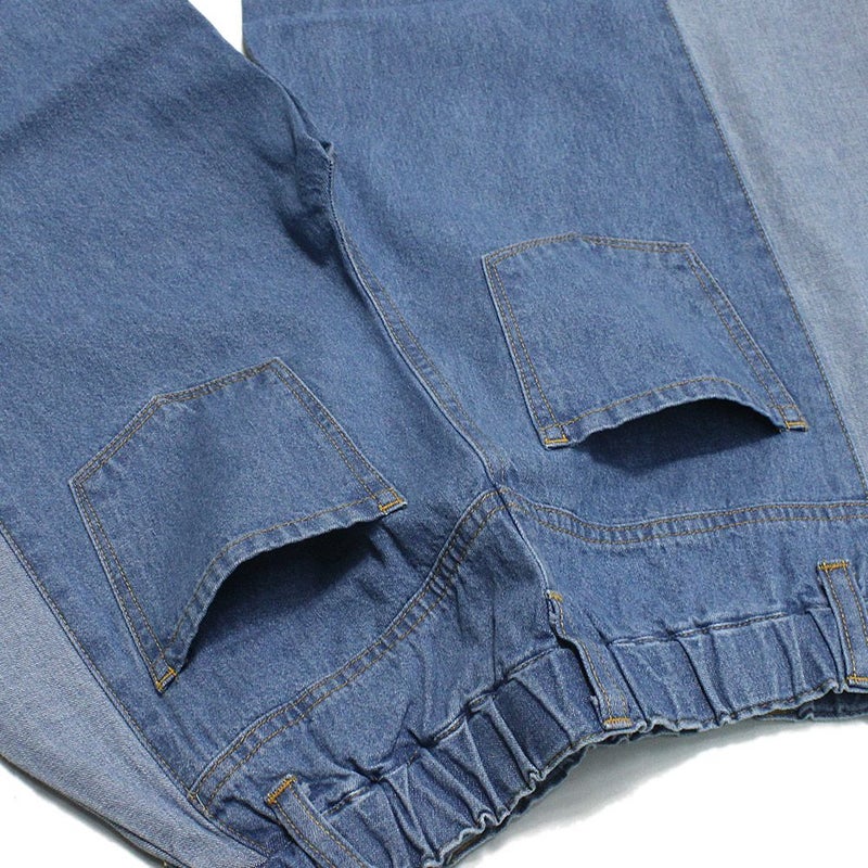 ・脇の切り替えが特徴的なデニムパンツ