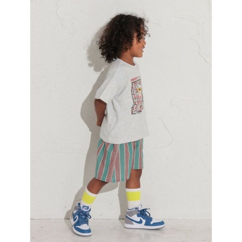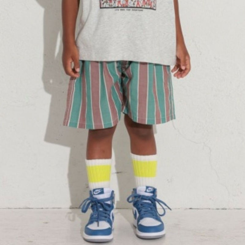 ・明るい配色ストライプが目をひくショートパンツ