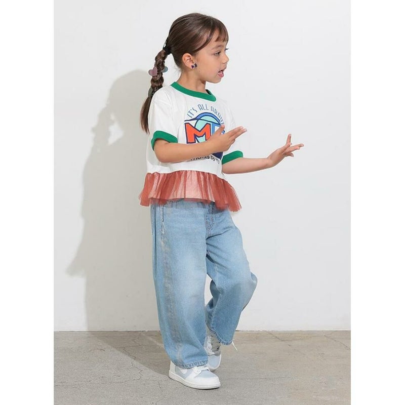 ・ウエストは総ゴムで飾りボタン付き