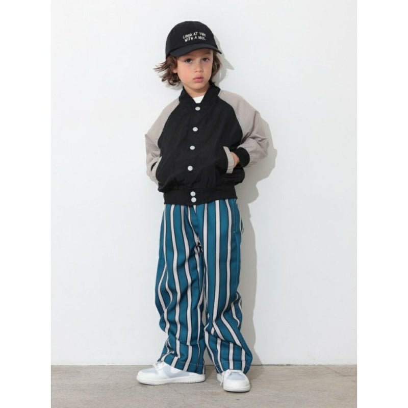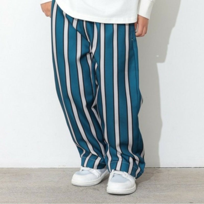 4. [オーシャン&グラウンド] ドット&ストライプワイドパンツ ターコイズブルー(TB)