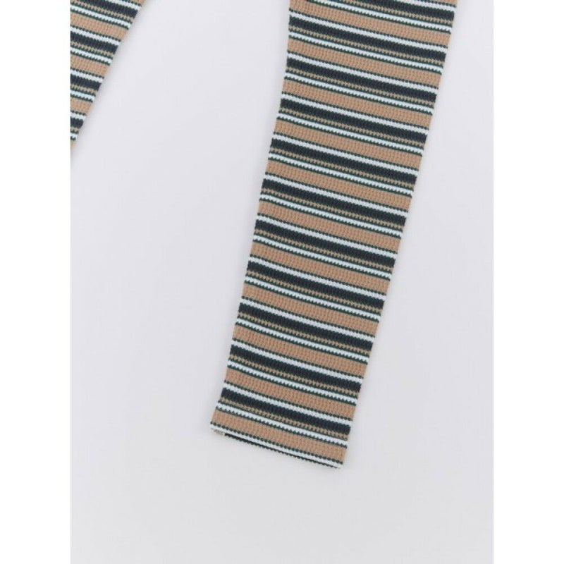 3. [オーシャン&グラウンド] ストレッチワッフルボーダーレギンス ベージュ(BE)